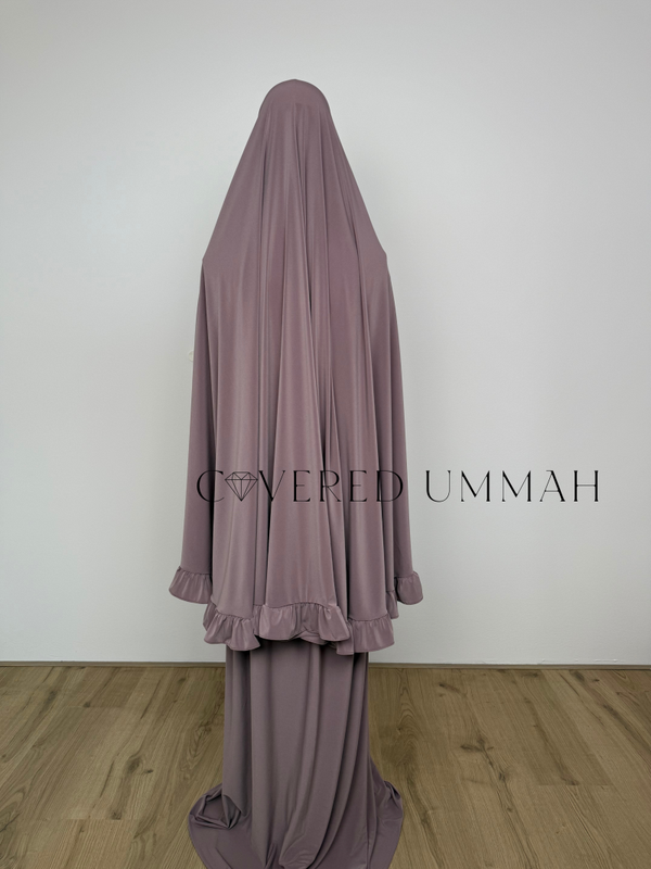 Premium Jersey Ruffle Khimaar & Rok Set ‘Mauve’