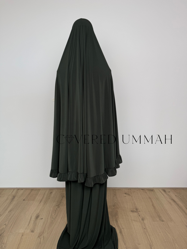 Premium Jersey Ruffle Khimaar & Rok Set 'Khaki'