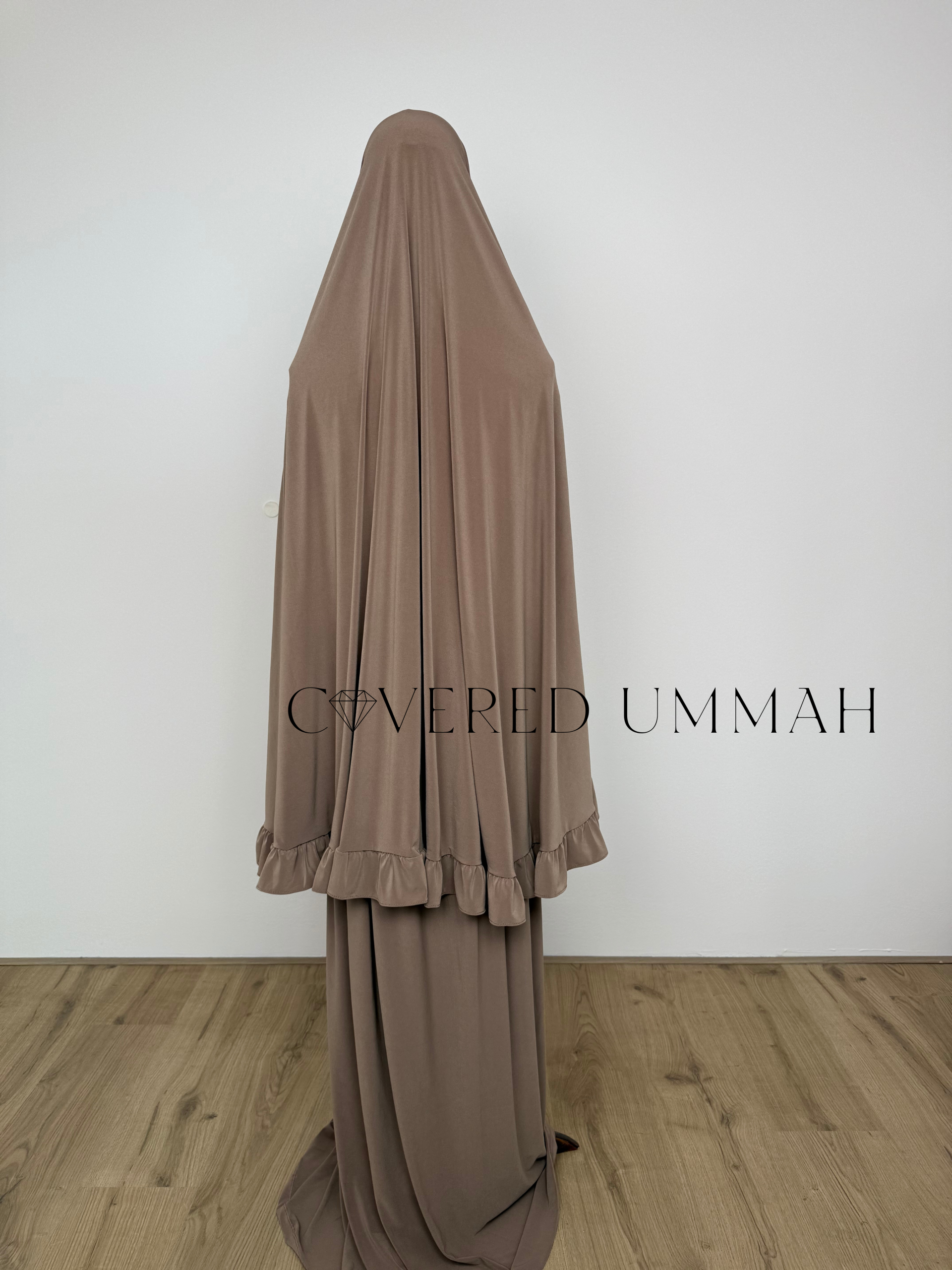Premium Jersey Ruffle Khimaar & Rok Set 'Coffee'